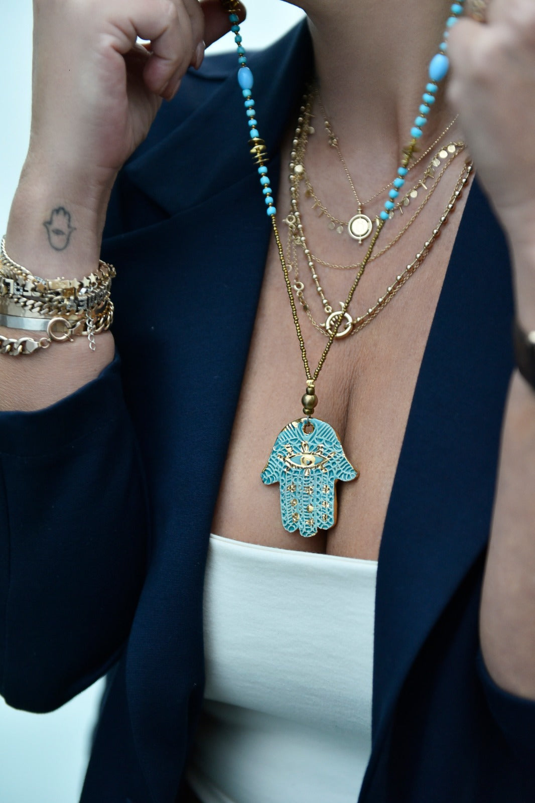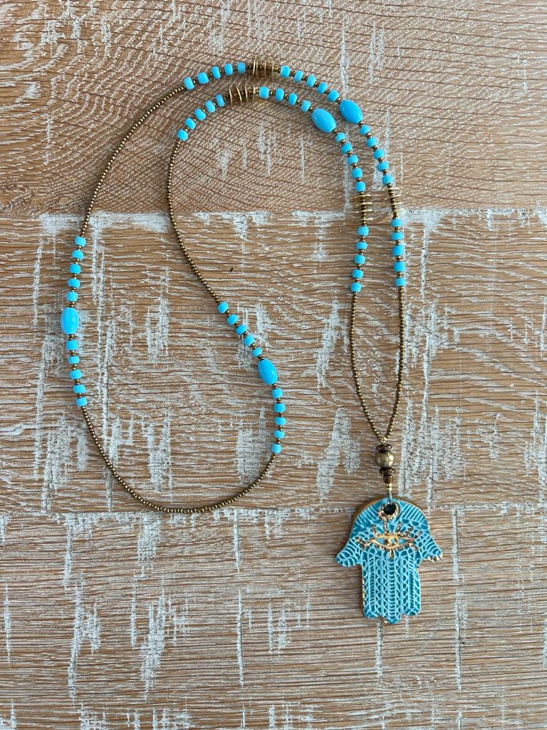 Malzemeleri dünyanın farklı yerlerinden toplanıyor ve her bir kolye tek tek elle diziliyor. Bu nedenle gönderilen hiçbir kolye, birbirinin aynı değil. Ufak tefek renk farklılıkları olabilir.