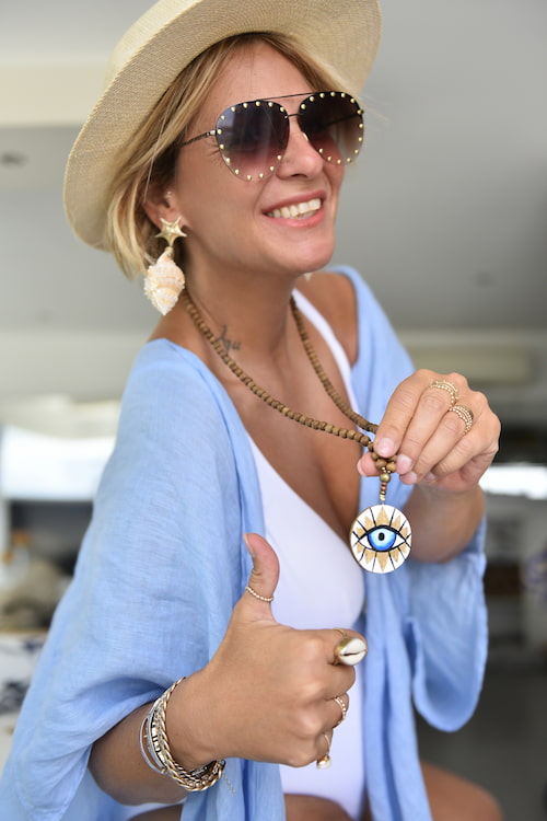 Kolye uçları, bize özel tasarlanan kağıt hamurundan… Doğal boncuklara buluşturarak dizdiğimiz her bir kolye, tek tek, el emeği göz nuru. Bu nedenle gönderilen hiçbir kolye, birbirinin aynı değil. Ufak tefek boyut ve renk farklılıkları olabilir.